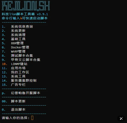 使用命令bash <(curl -sL kejilion.sh) 安装工具箱,并且按照教程进行操作